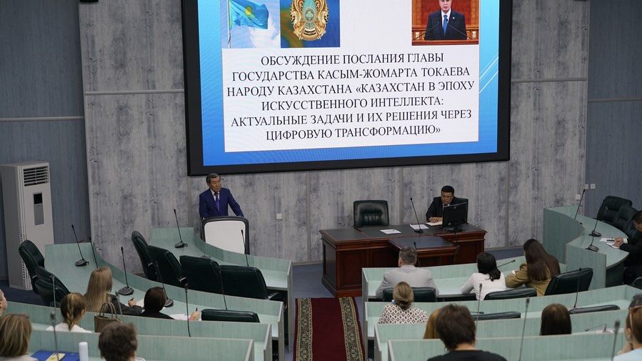 В Карагандинском университете Казпотребсоюза состоялось собрание актива, посвящённое обсуждению Послания Президента Республики Казахстан Касым-Жомарта Токаева «Казахстан в эпоху искусственного интеллекта: актуальные задачи и пути их решения через масштабные цифровые преобразования».