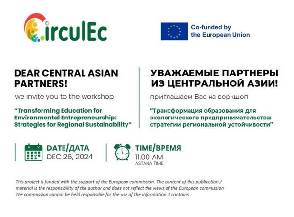 The CirculEC (Development of innovative curricula and modules in Circular Economy and Sustainable Development) project is aimed to build the capacity of the human capital in the HEIs of Central Asian countries on a circular economy in order to provide staff, students and wider public with skills and competences aligned to the needs of local labour markets and environmental challenges CA countries face.