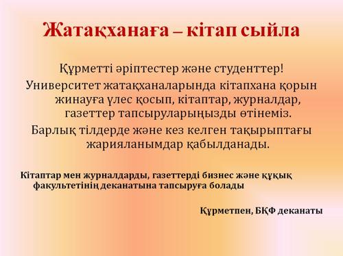 Студенттерге оқу үрдісінде үздік нәтижелер тілейміз!!!
