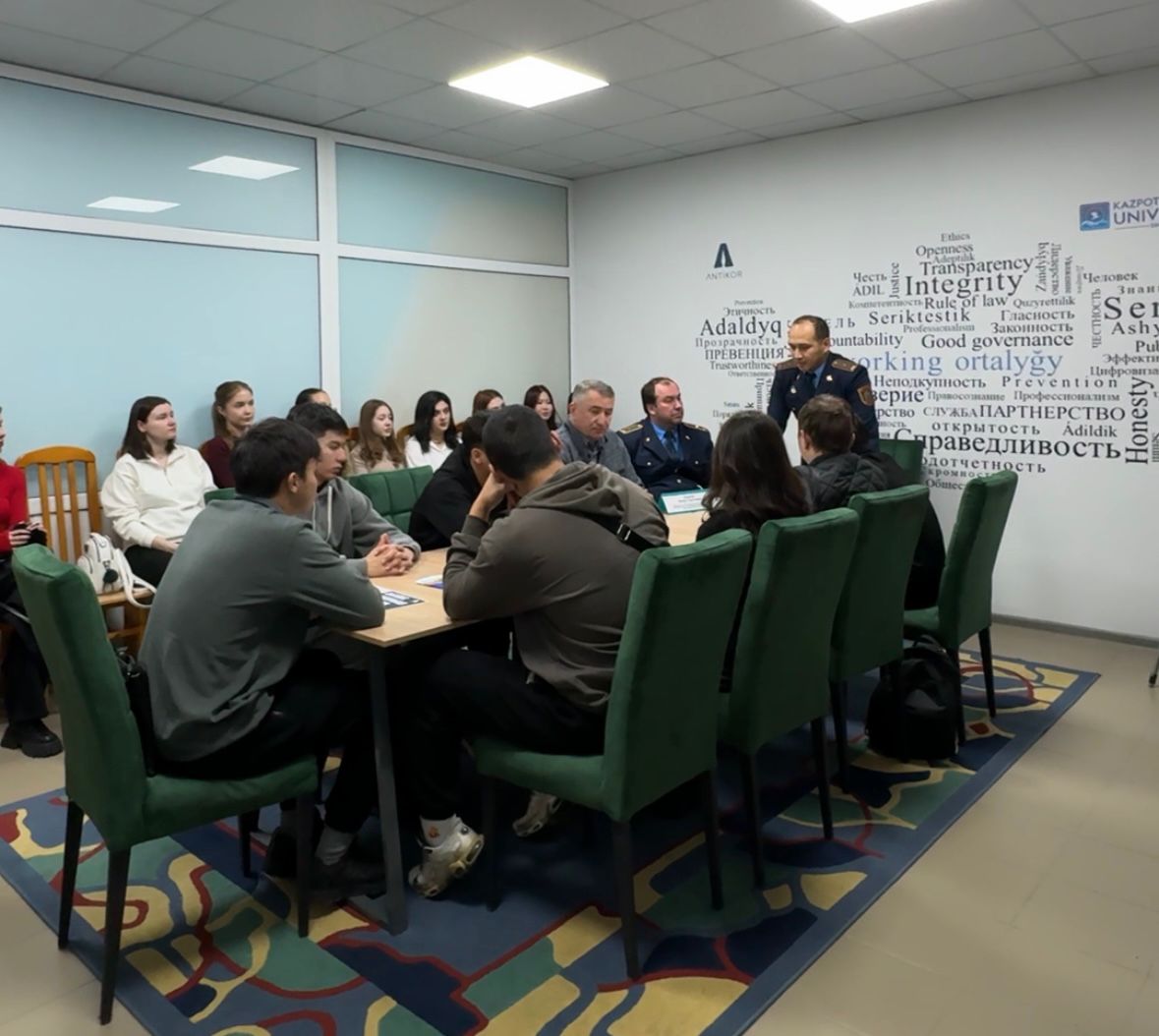 Университеттің Сыбайлас жемқорлыққа қарсы коворкинг-орталығында Қазақстан Республикасы Сыбайлас жемқорлыққа қарсы іс-қимыл агенттігінің Қарағанды облысы бойынша департаментінің қызметкерлерімен студенттер мен оқытушылардың кезекті кездесуі өтті.