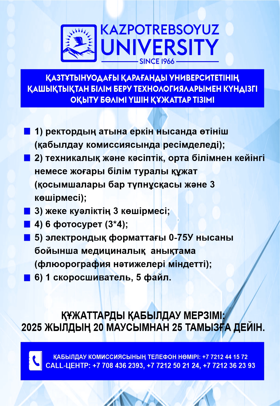 Университетке қабылдануға қажетті құжаттар тізбесі