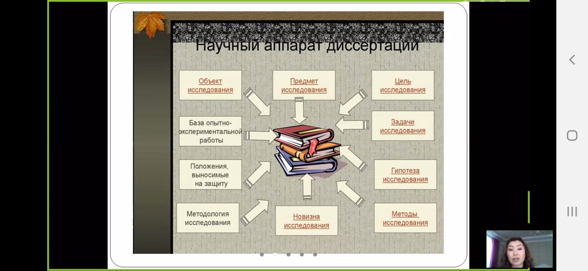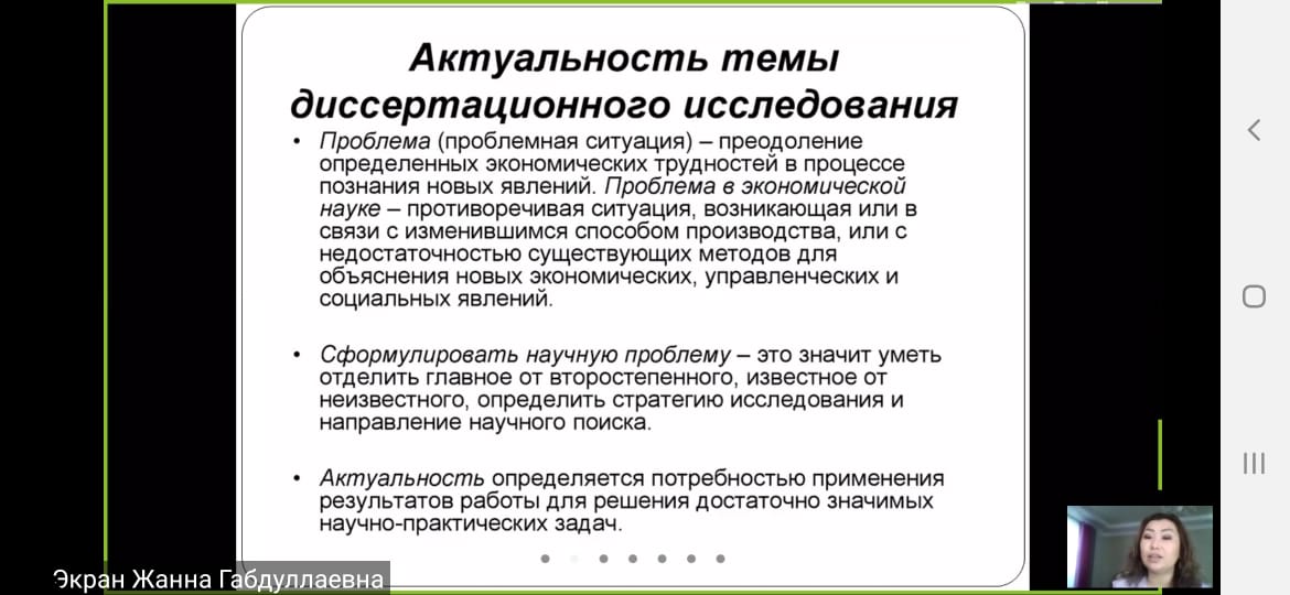 На семинаре обсуждались актуальные вопросы исследования, структура диссертационных работ. Спикером Шугаиповой Ж. Г. в полной мере была разъеснена подготовка к проведению научного исследования, необходимость достижения поставленных целей и задач. Участниками были заданы вопросы об исследованиях, проводимых в Казахстане, что является мотивацией для молодых ученных в наше время. Спикер дала подробные ответы на поставленные вопросы.
