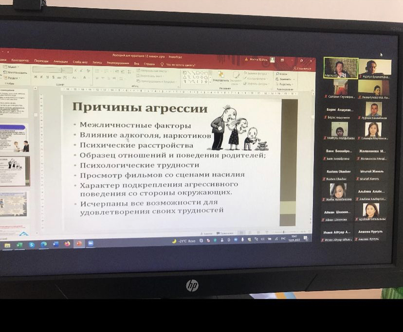 Были рассмотрены следующие вопросы: агрессия в межличностных отношениях; агрессивное поведение и межличностное взаимодейстие подростков и молодежи; эффективные формы и методы профилактики конфликтов, насилия и жестокости в подростковой и юношеской среде; буллинг, моббинг, кибербуллинг, кибермоббинг, колумбайн (скулшутинг), хейзинг, троллинг, – основные проявления деструктивности и агрессивности в межличностном взаимодействии; взаимосвязь между уровнем агрессивности и типом межличностных отношений; тренинги для кураторов и методики «Современные формы преодоления агрессии в межличностных отношениях».